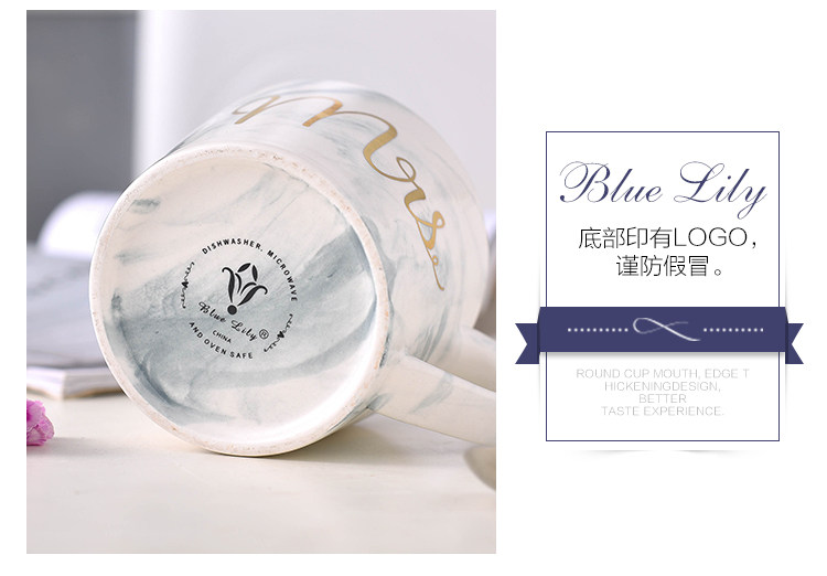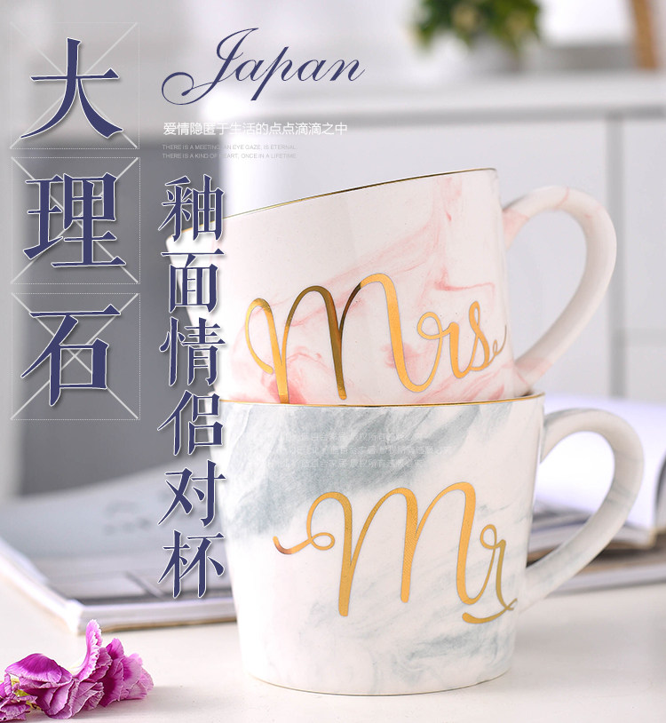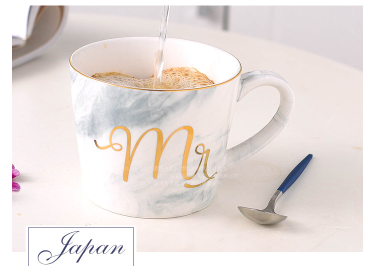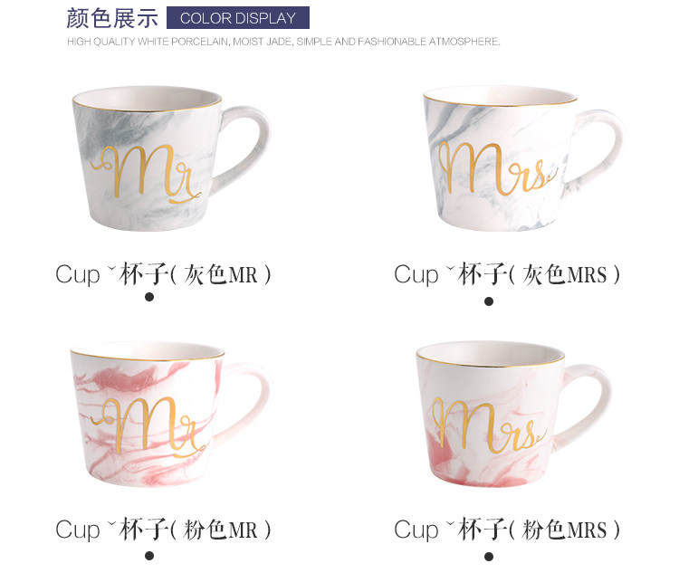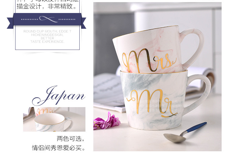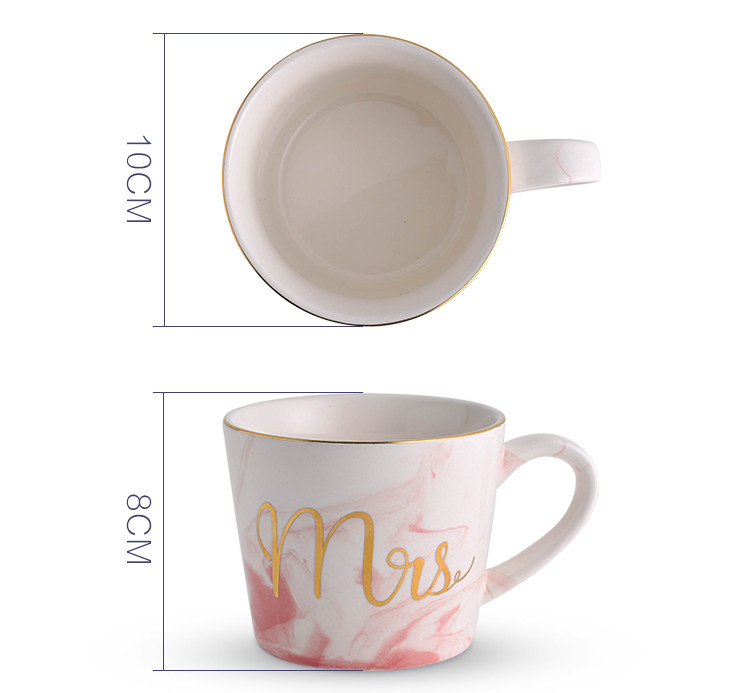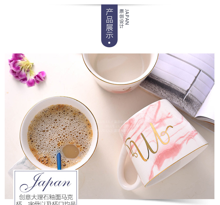 创意大理石金边陶瓷杯子水杯咖啡杯奶茶杯彩色马克杯情侣杯