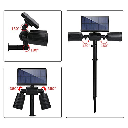 - Fully Adjustable Light & Solar Panel: Different from the congeneric products sold on the market, our solar landscape lights allow for fully adjusting the light angel(350 degree) to illuminate faultlessly at night and adjusting the solar panel(180 degree) to better absorb solar energy in daytime.