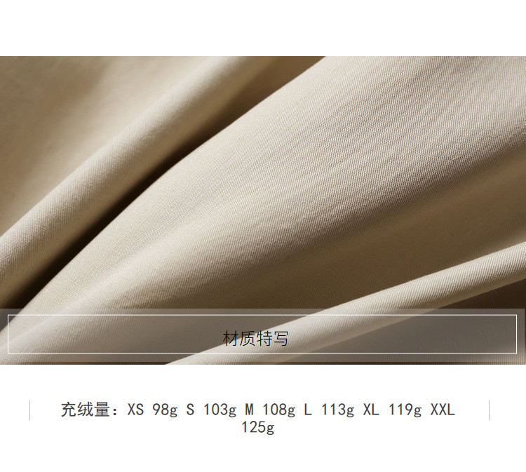 | 面料成分: | 面料:100%棉 里料:100%聚酯纤维 胆料:100%聚酯纤维 帽子填充物:100%聚酯纤维 |