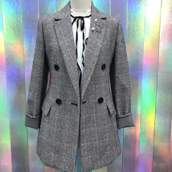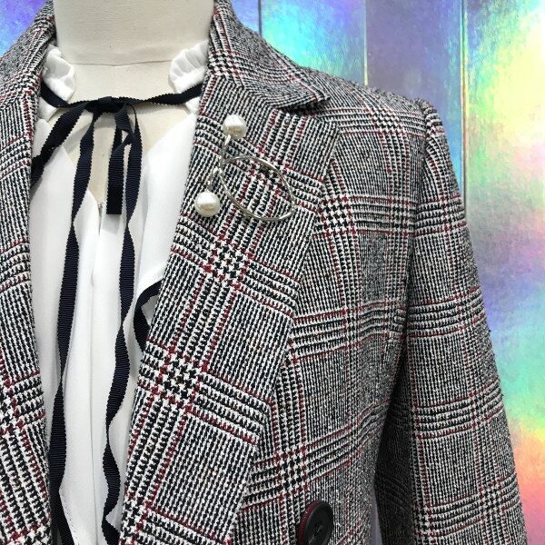 진주브로치 포인트두께감있는 체크 봄자켓입니다
