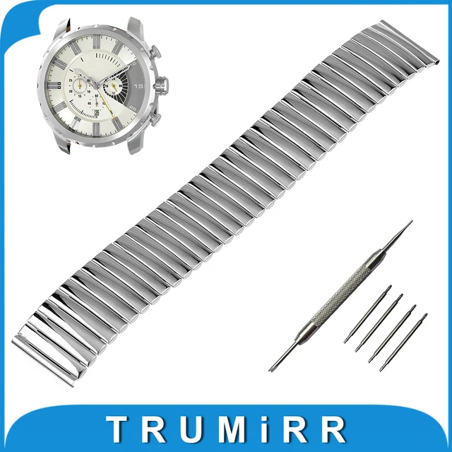 | [해외] 20 미리메터 22 미리메터 24 미리메터 탄성 시계 밴드 디젤 손목 스테인레스 스틸 스트랩 손목 벨트 팔찌 + 도구 + 봄 바 실버 |