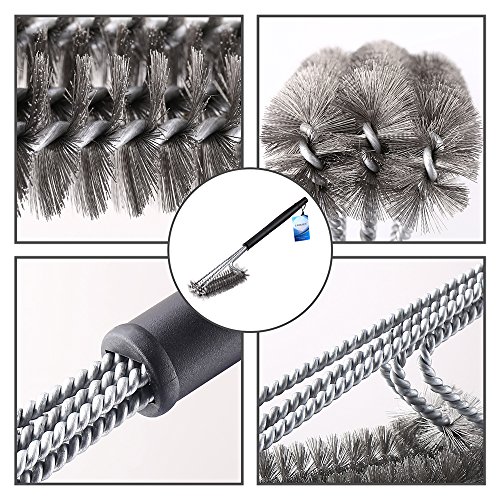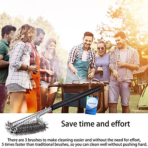 ♛ SAVE TIME&EFFORT: Barbecue Grill Brush With 3 BRUSHES IN ONE ,Makes Clean Up So Easy Without Having To Push Hard&Clean The Same Area 5x Faster than with a Traditional Brush! Large Enough To Clean the Top, Bottom, And Sides of all Grill Grates. Cleans Really Well Without having to push hard.