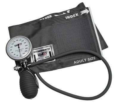 Palm Aneroid Sphygmomanometer, Adult. Ribbed inflation bulb for easy and secure grip. Color coordinated gauge and cuff, grey or orange. Deluxe push-button air release valve. Deluxe end valve reduces dust build-up. Deluxe nylon carry case is included.Feature