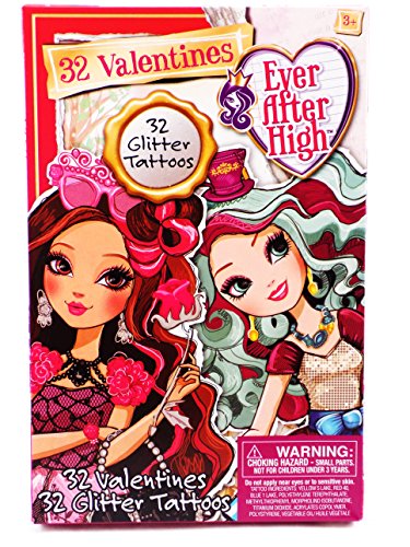 New 2016 Ever After High 32 Valentine Classroom Sharing Cards with Glitter Tattoos