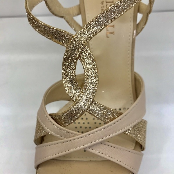 소재: 양가죽색상: 베이지굽: 8CM화려한 금펄과 베이지색이 어우러진 하이힐 샌들 제품으로, 굽이 높은 편이지만 앞쪽의 가부시로 인해 편한 착용감을 느낄수있습니다. 화려하지만 막상 착화하시면 많이 튀지않고, 햇빛 아래에서 가장 예쁜 제품입니다.
