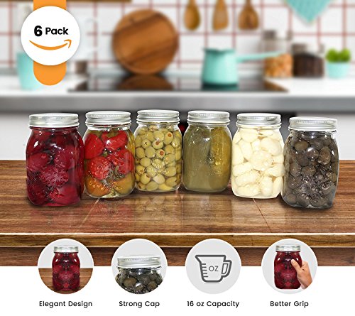 - HIGH QUALITY JARS: This mason jar set is of the highest quality and designed for your convenience. Each jar has a 16 oz capacity and can be used for several different uses. Use the reusable glass jars instead of disposable containers, such as cans that can affect the flavor and freshness of your supplies.