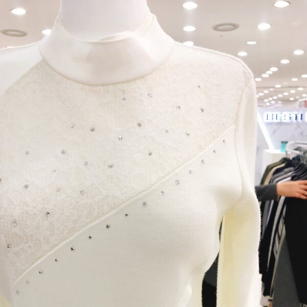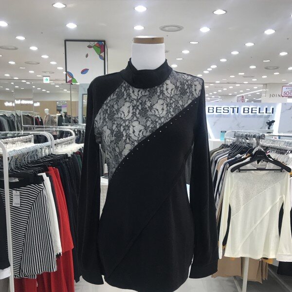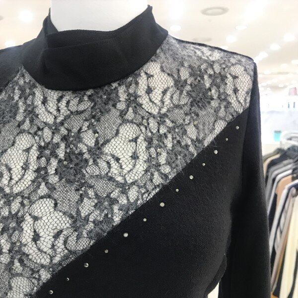 사선 레이스 시스루가포인트인 슬림한 니트입니다