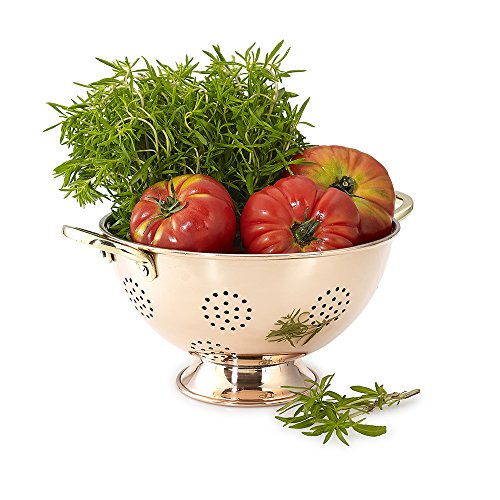 Kuprum Handmade Solid Natural Copper Colander, Pasta Strainer, Drain Water & Rinse Vegetable 9.4"