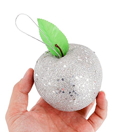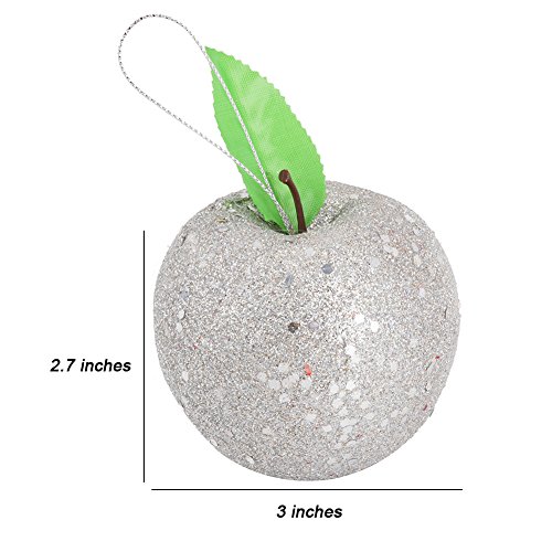 Biowow Sliver Glitter Apples Christmas Tree Ornament Holiday Hanging Ornament Party Decoration,6 Pack