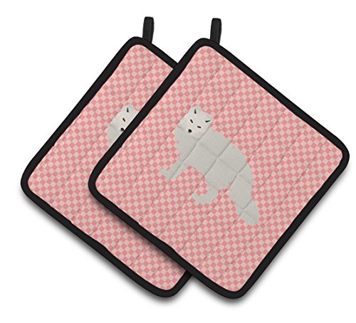 Caroline's Treasures BB7877PTHD White Arctic Fox Pink Check Decorated Pot Holder, 7.5" x 7.5", Multicolor