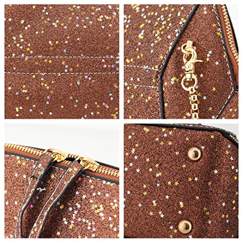 - FEATURES - Designed in dazzling sequins & high-quality PU leather and decorated with sparkling little stars, which look more exquisite, sweet and lovely. Also features well-made zipper closure, polyester lining and a small pocket inside with zipper.
