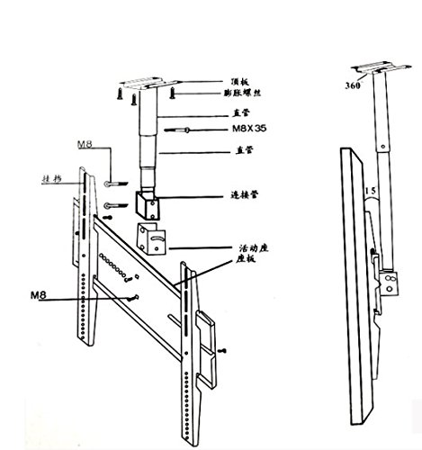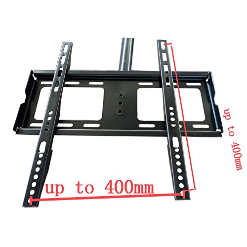 -. Feature : Supportable Display Size: fits most 26"-50" TV, some up to 55" (check VESA and weight); Color: Black / Load Capacity: 99 lbs (45KG); Tilt: 15° Forward, 360 degrees pan / VESA: 400x400mm (15.7"x15.7"), 400x300mm (15.7"x11.8"), 300x300 (11.8"x11.8"), 400x200mm (15.7"x7.9"), 200x200mm (7.9"x7.9"), 300x200mm (11.8"x7.9"), 200x100mm (7.9"x4"), 100x100mm (4"x4") / Easy height adjustment, extends from 57cm (22.4") up to 90cm (35.4") / Notice: Please check your ceilling wall, is it concrete wall or regular wall ? Ceiling plate dimensions: 4.5 inches x 4.5 inches (square)