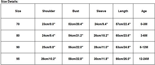 -. Feature : Suitable for ages in children (0-2 years old) / Material: Cotton / Gender: Unisex / Clothing Length: Regular / NOTE: Please compare the detail sizes with yours before you buy!!! Use similar clothing to compare with the size.