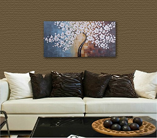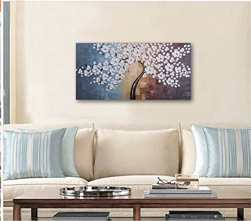 -. Title : Wieco Art - Blooming life 100% Hand-painted Oil Painting, Stretched and Framed Modern Canvas Wall Art for Home Decor Floral Oil Paintings on Canvas Art