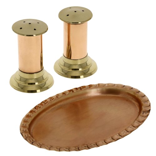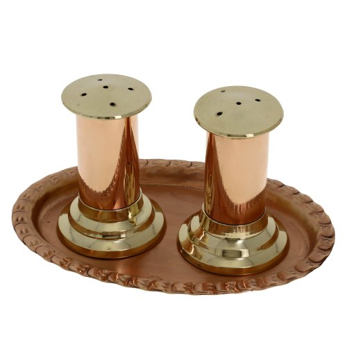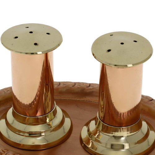 ShalinIndia Handmade Tableware Serveware Copper & Brass Salt and Pepper Shakers with Serving Tray - Salt and Pepper Shaker Set - Stunning Unique Housewarming Gifts