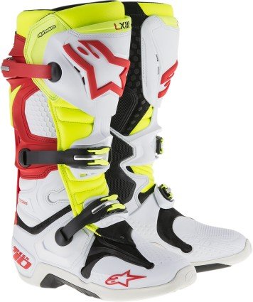 Studio : Alpinestars Publisher : Alpinestars Product Description The benchmark boot in motocross; the 2014 Tech 10 further advances the innovations that make it the most technical motocross boot ever conceived. From the anatomical shape, with front and rear sliding blades, to the all-new closure system featuring a light and durable buckle closure system, every component of the new Tech 10 boot has been continuously developed and tested in racing for uncompromised performance and durability. The one-piece co-injected foot chassis incorporates five different advanced polymer compounds in a single streamlined and lightweight piece to offer strength and flexibility throughout the structure, while maintaining its robust structural integrity with no joints or weak points Innovative, lightweight upper combines full-grain leather with advanced lightweight microfiber and an impact and abrasion resistant TPU shell Frontal protection features a dual closure system with an internal microfiber flap, plus Velcro® for a precise fit closure attached securely with a micro-adjustable, easy to operate, lightweight buckle. Shin incorporates a unique TPU blade system engineered to prevent frontal hyperextension and offer greater flex control. Innovative, ergonomic design for lateral and medial flex zones to provide superb front and rear flexion support which helps prevent damaging torsional forces around the ankle area Medial-facing panel is constructed from a one-piece, specifically formulated polymer for improved structural stability and integrity, and incorporates a rubber insert panel for maximum grip contact with bike and improved abrasion resistance. Contoured TPU calf protector plate offers impact resistance and incorporates Alpinestars innovative rear blade system, formed with hard shock resistant polymer to protect the heel and features a rear hyperextension guard. Multi-density foot shell incorporating heel a 0
