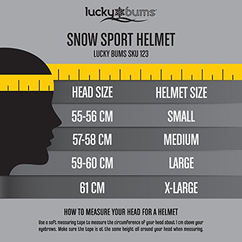 The Lucky Bums Snow Sport Helmet is everything you want in a helmet at an affordable price. It's comfortable, stylish, durable, and most of all, functional. This helmet has two reinforced protective layers. The external shell is made from strong ABS high-impact plastic, with an inner EPS, impact absorbing liner for dual protection. The helmet fully complies with EN 1077 Class B standards. There's more than meets the eye with the Lucky Bums Snow Sports Helmet. Inside, the internal fabric lining and ear padding are hypoallergenic and antibacterial, while the EPS inner liner features multiple vents with mesh screens to allow for ample airflow. In addition to being vented and hypoallergenic, this helmet is comfortable to wear all day long. Its padded chin strap and integrated goggle loop enhance comfort and function. There are 4 sizes to choose from and each helmet includes a micro adjustable strap for the perfect fit for just about anyone. Look good, feel good, be protected. We know how upsetting it is to have a great day on the mountain spoiled by uncomfortable, undependable gear. That's why we created Lucky Bums. We believe in our quality and put our money where our mouth is. Each helmet comes with a Manufacturer's Limited Lifetime Warranty, which protects against defects in materials or workmanship.Feature