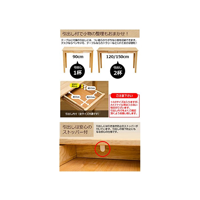 원본상품명: 引出し付きデスク 天然木 ナチュラル 90cm幅 UMT-9045NA