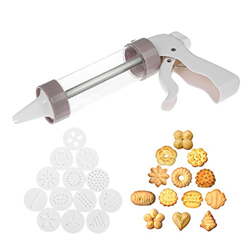 VARIOUS CREATIVITY - The biscuits maker with 13 shapes of cookie cutters and 6 pastry tips offer you more freedom for creation. You can make different shapes of biscuits with various mounting patterns. After you fill up the pastries, you can easily make exquisite and nice biscuits simply by pressing the pastries. This biscuits maker frees you from those annoying steps such as greasing, putting oilpapers and extruding shapes. It is so easy that even children can use it.