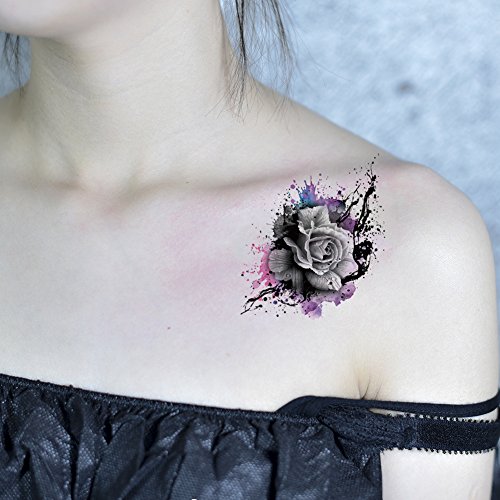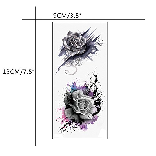 TAFLY Gray Rose Temporary Tattoo Fake Sexy Body Art Stickers For Woman 5 Sheets