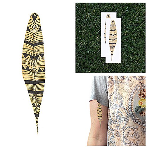 Tattify Yellow Feather Temporary Tattoo - Oriole (Set of 2) - Other Styles Available and Fashionable Temporary Tattoos - Tattoos are long lasting and Waterproof
