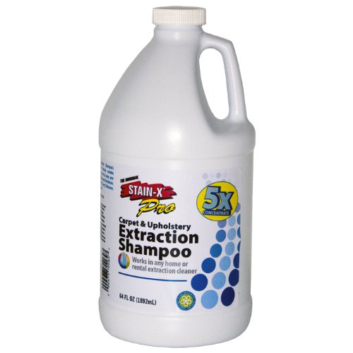Studio : STAIN-X Publisher : STAIN-X Binding : Misc. Product Description Stain-X® Pro Carpet Upholstery Extraction Shampoo is highly concentrated for outstanding performance at an economical price. A mix ratio of 1 oz Stain-X® Carpet Upholstery Extraction Shampoo per 1 gallon of water means less chemicals are needed to keep carpets looking fresh and new. The 5 in 1 Formula contains: Deodorizer, Degreaser, Fabric Guard, Defoamer, and Stain Remover, everything is built in so there is no need to purchase other chemicals to complete the job, saving you money. This specially balanced blend of low foaming surfactants is designed for water extraction cleaning on all types of carpet upholstery. Professional strength designed for the home user, no other carpet shampoo cleans as well as Stain-X®! Leaves no residue so carpets stay cleaner longer. Can be used in all water extraction machines including rental machines! Stain-X® Pro Carpet Upholstery Extraction Shampoo has earned the Seal of Approval from the Carpet Rug Institute. 0