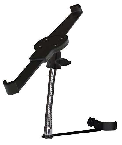 -. Feature : Clamps directly to microphone stand for easy access to your tablet / Works with tablets 7-10 inches in size / Rotating to allow for multiple viewing angles