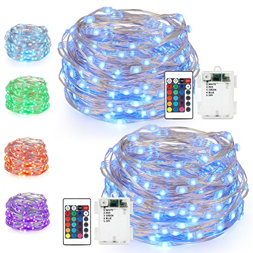 LED String Lights,Battery Powered Multi Color Changing String Lights With Remote,50 Leds Indoor Decorative Silver Wire Lights for Bedroom ,Patio,Outdoor Garden,Stroller,Christmas Tree 16ft, 2 Packs