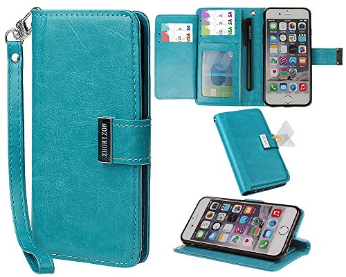 xhorizon Premium PU Leather Magnetic Wallet Wristlet Purse Flip Multiple Card Slots Case for iPhone 6/6S [4.7"]