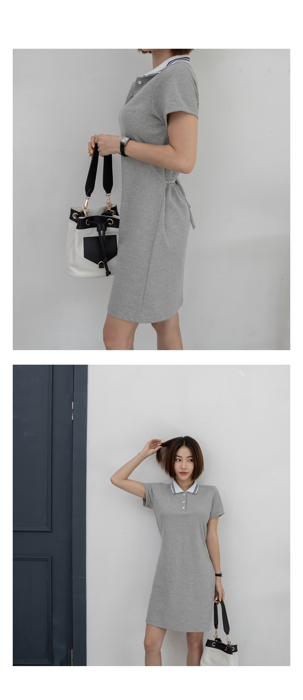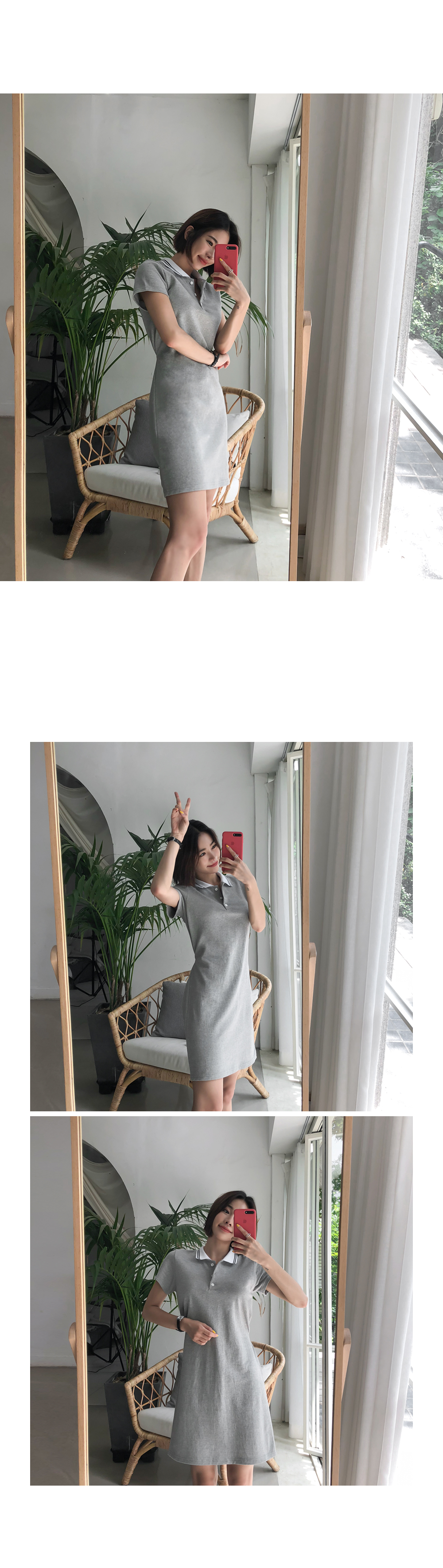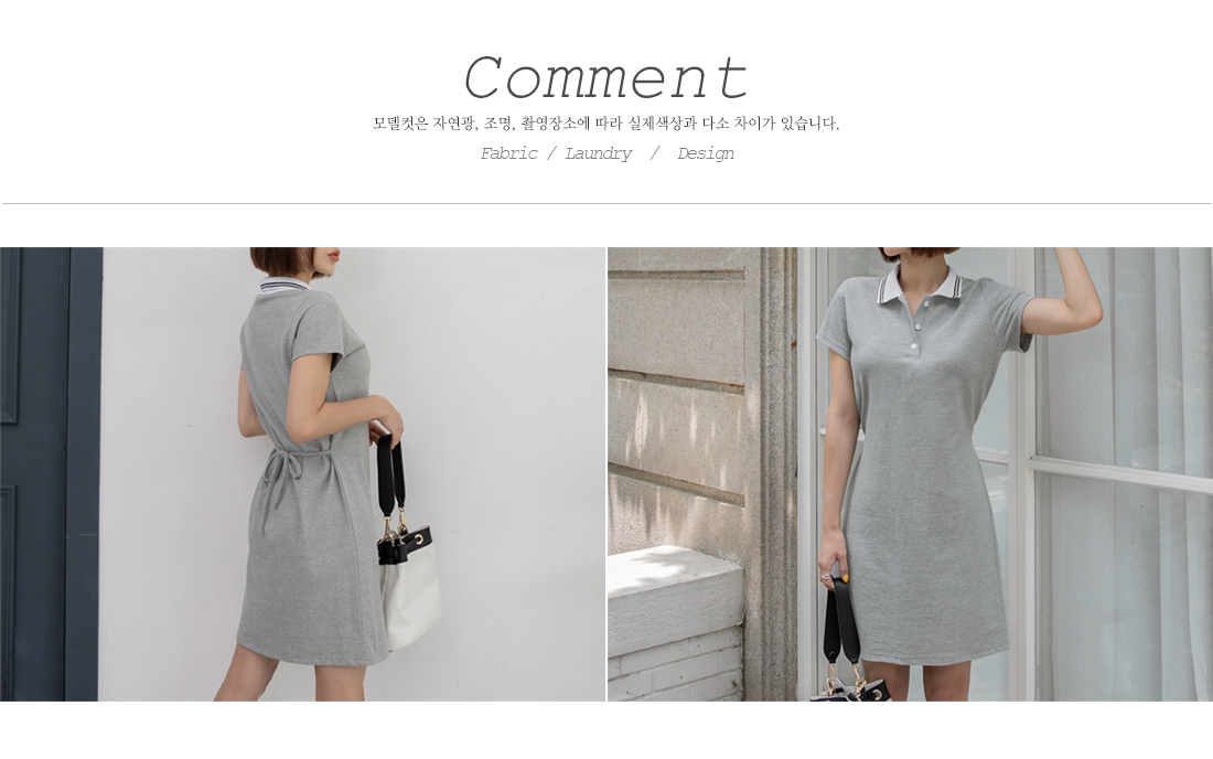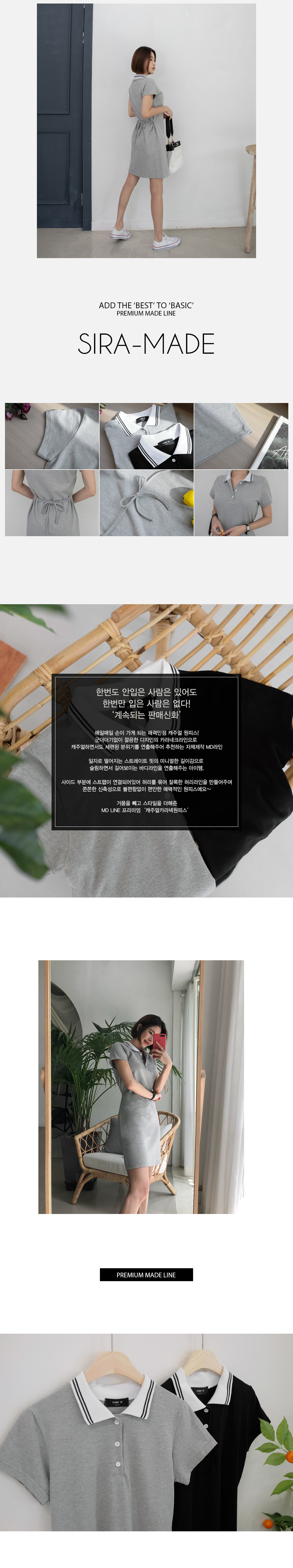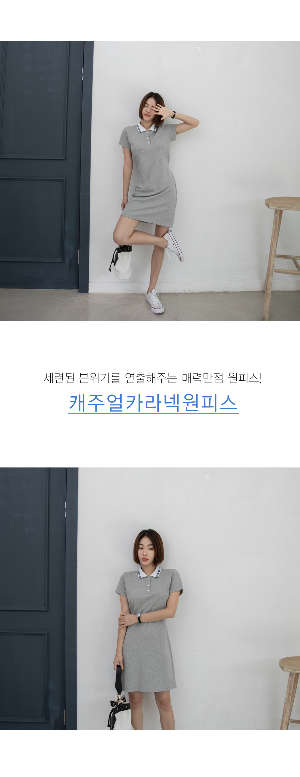 군더더기없이 깔끔한 디자인의 카라네크라인으로 캐주얼하면서도 세련된 원피스에요~!