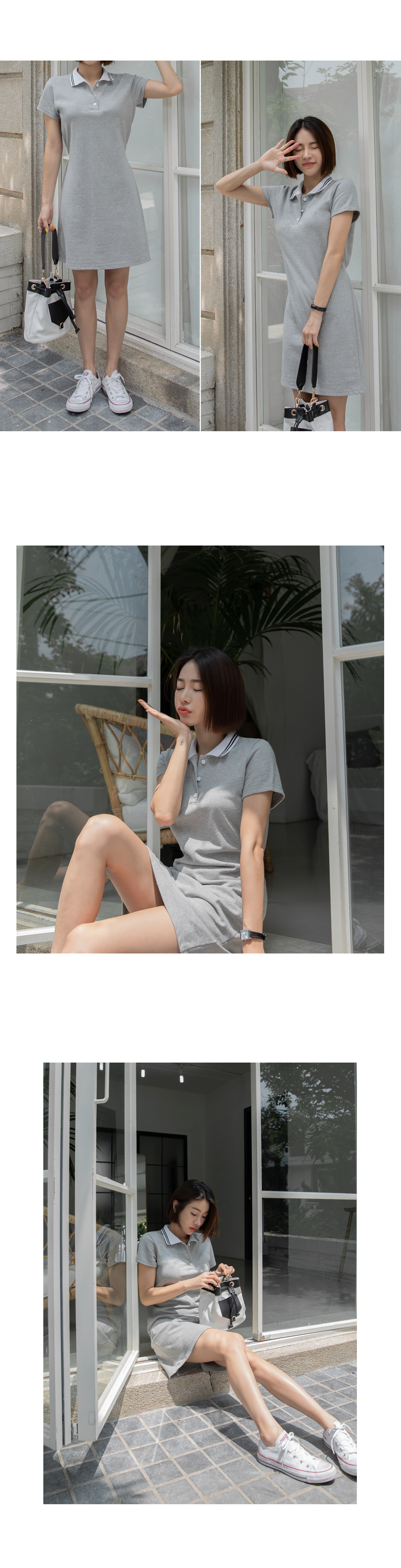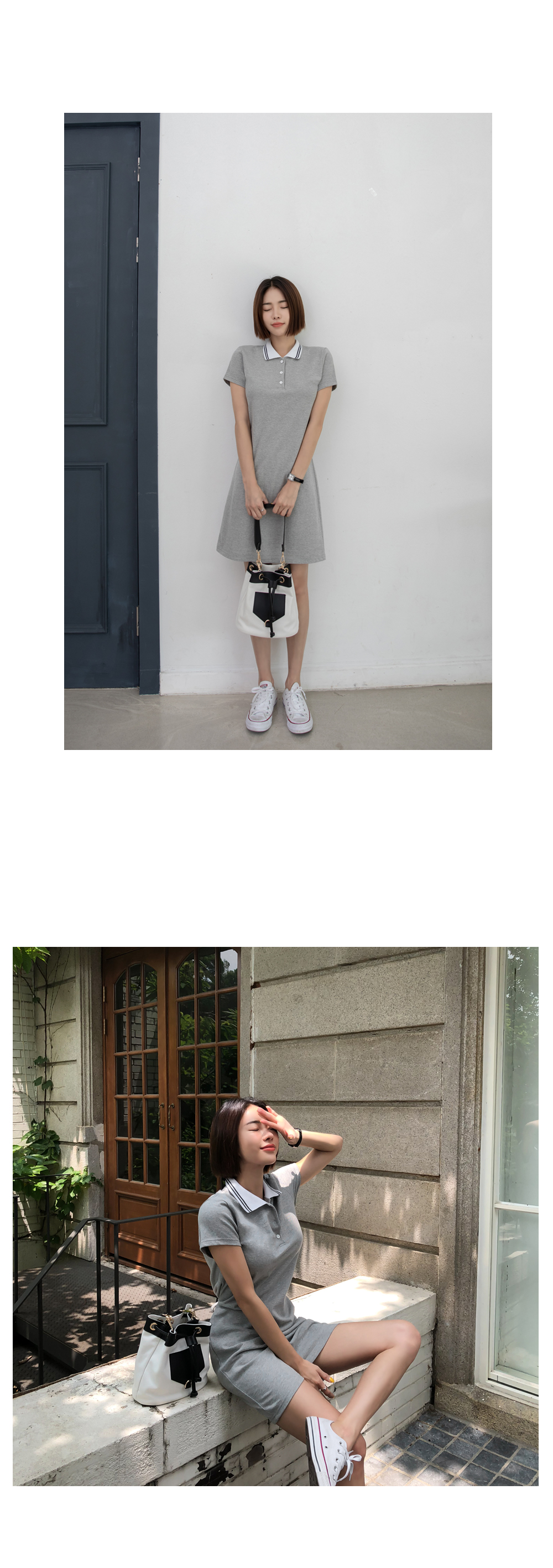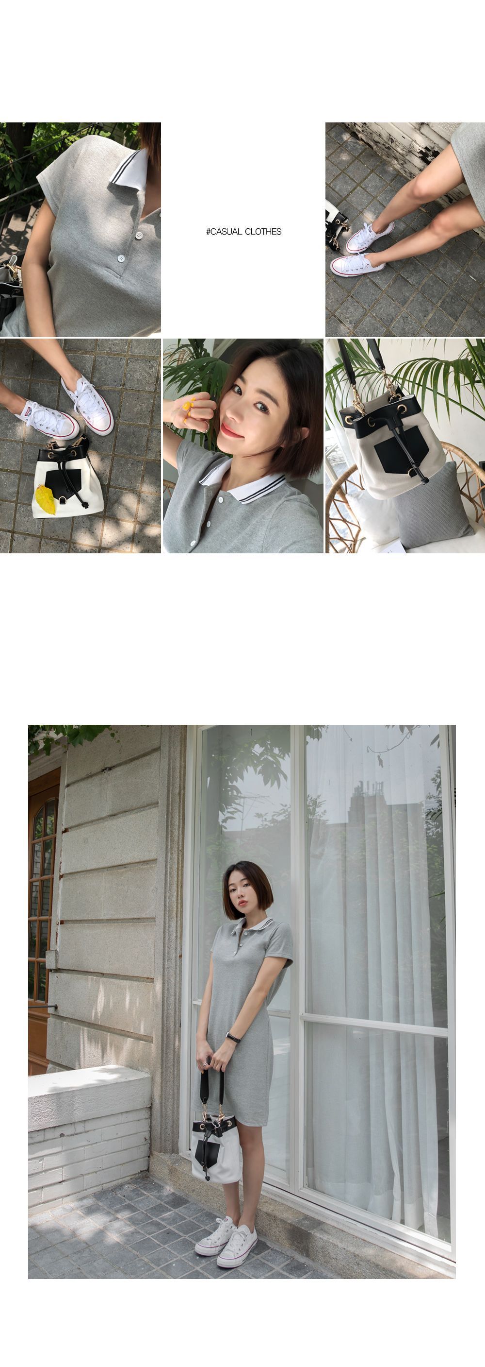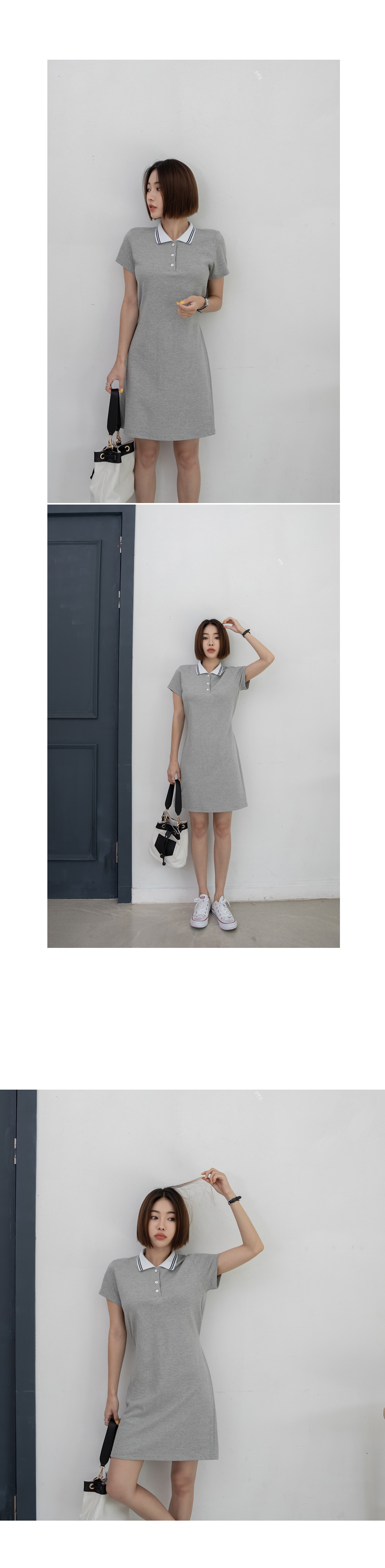 군더더기없이 깔끔한 디자인의 카라네크라인으로 캐주얼하면서도 세련된 원피스에요~!
