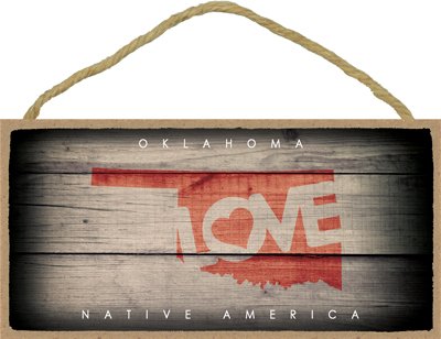 (SJT13569) Oklahoma - State Outline With "Love" And State Motto 5" x 10" Wood Plaque Sign
