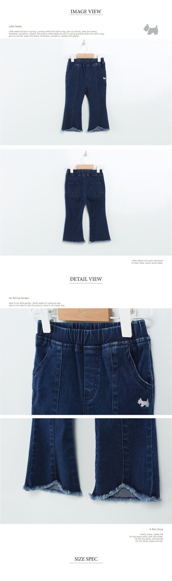 스판성 좋은 부츠컷 데님팬츠로 밑단 올풀림과 아가타 로고 자수로 포인트를 준 스타일입니다.