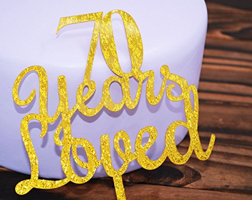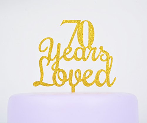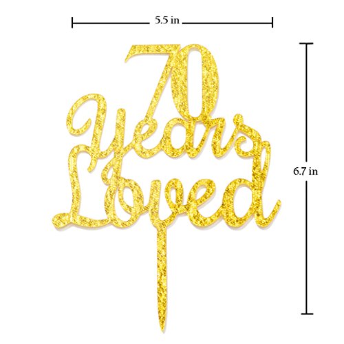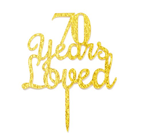 Qttier 70th years loved Happy Birthday Cake Topper Anniversary Party Decoration Premium Quality Acrylic Gold