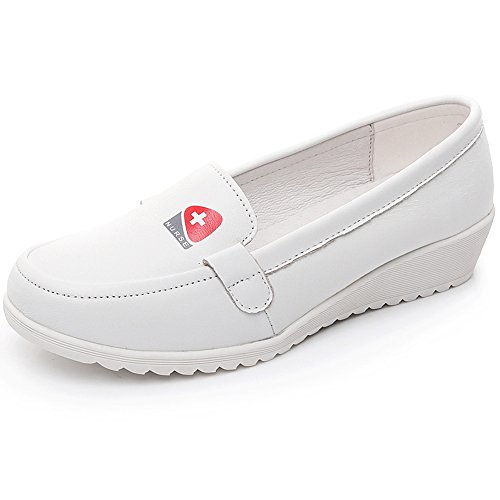-. Title : Shenn Women's Wedge Comfort Lightweight Slip On Leather Nurse Shoes