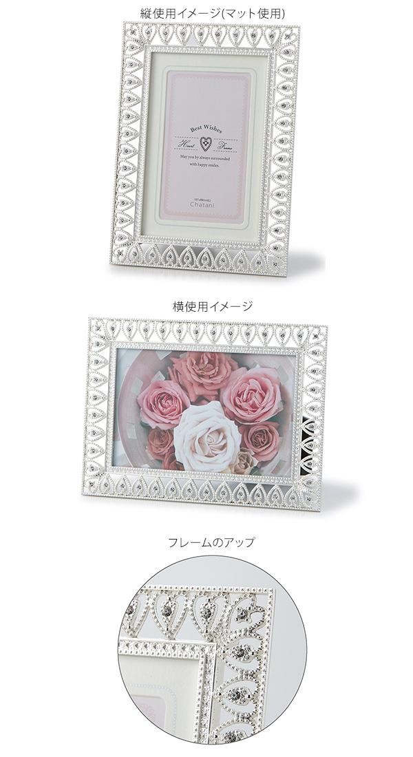 | 透け感のあるハートモチーフにラインストーンを組み合わせた華やかなフォトフレーム。記念日や思い出の1枚を飾るのにぴったりです。マットの着脱で対応フォトサイズが変わり、シーンに合わせてご使用いただけます。結婚祝いなどのギフトにもオススメのアイテムです。 |