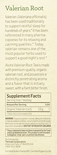 -. Binding : Health and Beauty -. Brand : Alvita -. EAN : 0027434038201 -. Feature : eco ditty reusable sandwich and snack bags are made from 100% organic cotton / It has been referenced in many pharmacopoeias for its relaxing and calming qualities / Today, valerian remains one of the most popular herbs used to support a good night's rest -. IsAdultProduct : 0 -. Label : Alvita -. Manufacturer : Alvita -. Model : AIS-405 -. MPN : AIS-405 -. NumberOfItems : 1 -. PackageQuantity : 1 -. PartNumber : AIS-405 -. ProductGroup : Health and Beauty -. ProductTypeName : HEALTH_PERSONAL_CARE -. PublicationDate : 2014-12-22 -. Publisher : Alvita -. ReleaseDate : 2014-12-19 -. Size : 1 Box -. Studio : Alvita -. Title : Alvita Organic Herbal Valerian Tea, 24 Count -. UPC : 027434038201