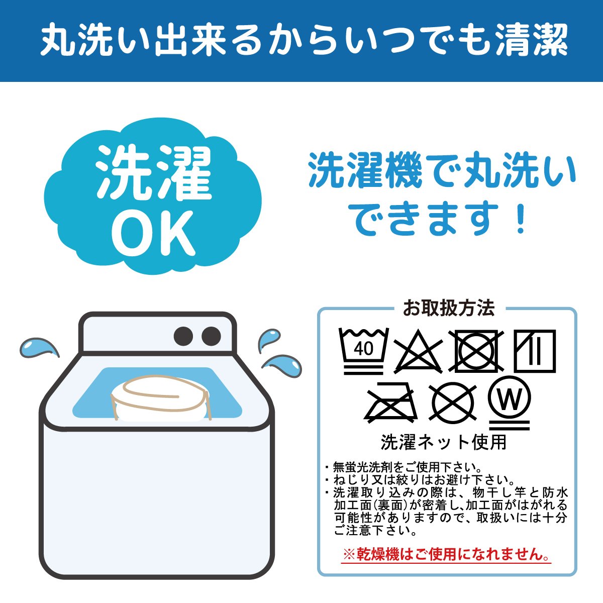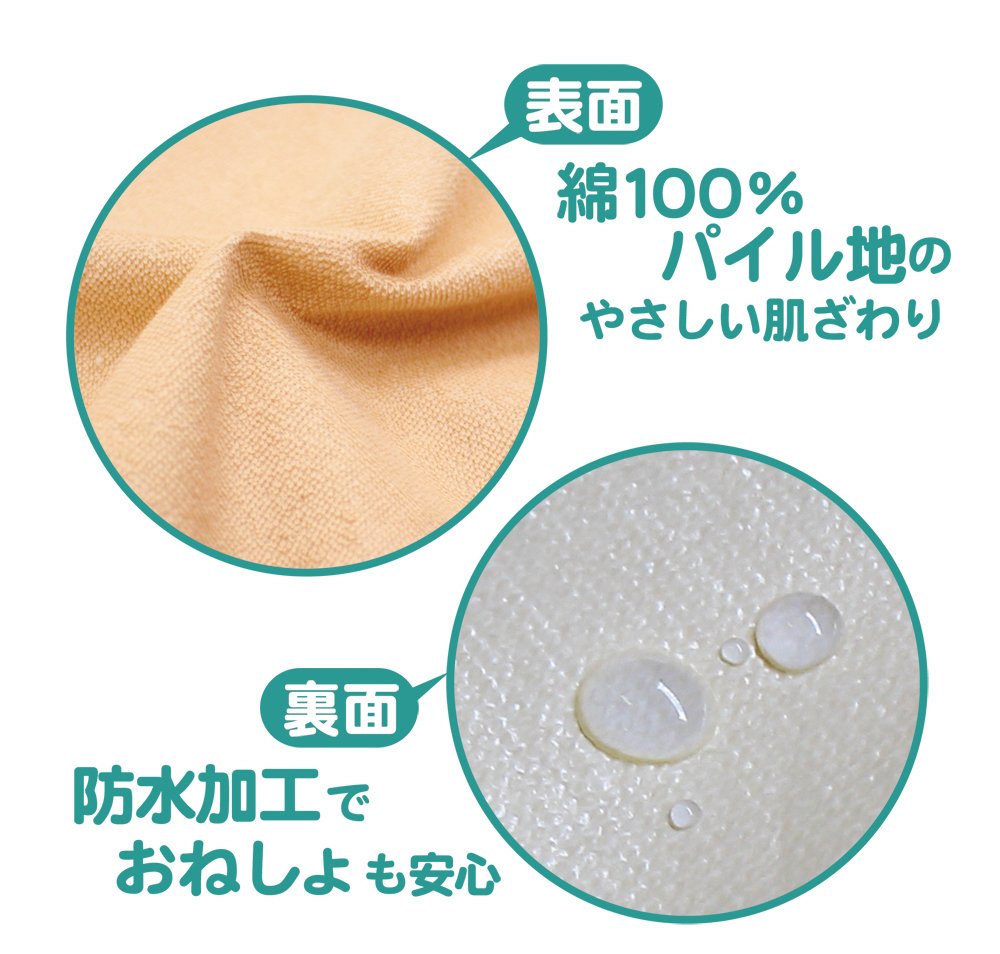 The front side is 100% cotton gentle pile material, the reverse side is waterproof and it does not let moisture pass through the mat.