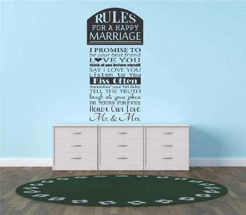 Design with Vinyl Black - Star 940 Rules for a Happy Marriage I Promise to Be Yours for ever Honor Our Love Mr. and Mrs. Marriage Quote Vinyl Wall Decal, 12-Inch x 30-Inch, Black