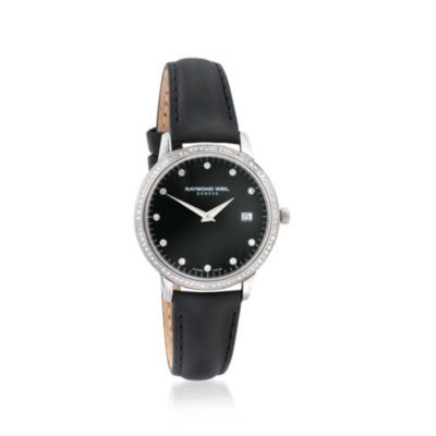-. Binding : Watch -. Brand : Raymond Weil -. Color : black -. Department : womens -. EAN : 7611784038610 -. Feature : Diamonds are forever. Choose style, quality and function with this amazing diamond studded watch / Swiss quartz movement with analog display and sapphire crystal dial window / Date calendar water-resistant / Black leather strap and stainless steel case with black dial accented with diamonds / Water resistant to 5 ATM / 50 meters / 165 feet : suitable for use around household sinks playing sports and swimming in shallow water but not bathing snorkeling or scuba diving -. Label : Raymond Weil -. Manufacturer : Raymond Weil -. Model : 5388-SLS-20081 -. MPN : 5388-SLS-20081 -. PackageQuantity : 1 -. PartNumber : 5388-SLS-20081 -. ProductGroup : Watch -. ProductTypeName : WATCH -. Publisher : Raymond Weil -. Studio : Raymond Weil -. Title : Raymond Weil Toccata Black Dial Diamond Black Leather Ladies Watch 5388-SLS-20081