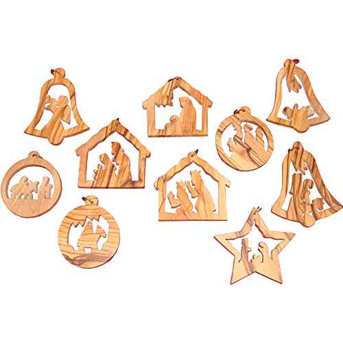 6.5cm Christmas Tree Ornaments Set Hand Carved Bethlehem Holy Land