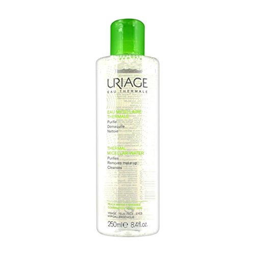 -. Feature : Uriage Thermal Micellar Water Combination to Oily Skin 250ml removes make-up, cleanses and purifies face and eyes of combination to oily skins. / Its formula contains highly cleansing micelles and Uriage Thermal Water with soothing and anti-irritant properties. The soft non ionic surfactants, constitutive of micelles act like magnets and capture the make-up and impurities. Its formula also contains glycerin with moisturizing properties and extracts of green apple and Pore refiner to normalize the quantity of sebum and purify the skin. / The skin is clean, supple, purified and not sticky. / Hypoallergenic. Tested under ophthalmic control.