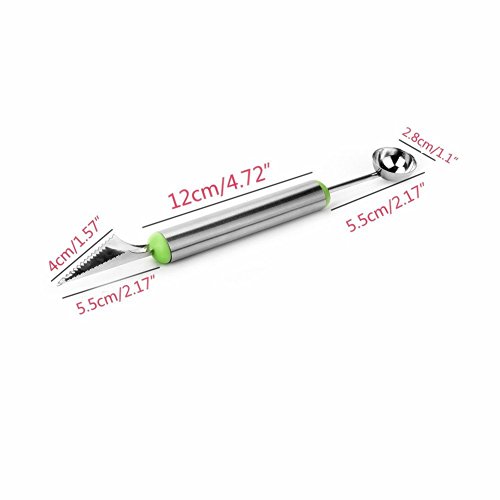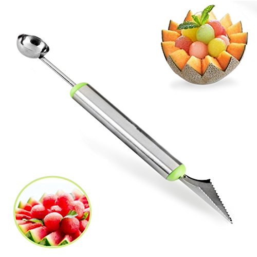 - MULTl-FUNCTION DESIGN: Scooper has sharp carving knife on one end that lets you carve creative, intricate designs in fruit.Sphere end lets you scoop out uniform balls of fruit or vegetables & create attractive-looking meals