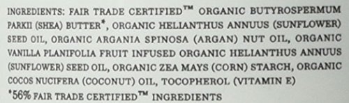 -. Feature : Moroccan Argan Oil nourishes damaged or irritated skin / Fair Trade Certified Shea Butter moisturizes and