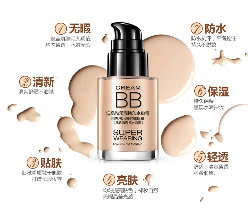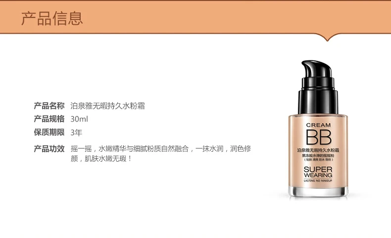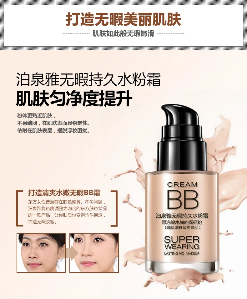 BIOAQUA Persistent BB Cream Foundation Whitening and Moisturizing Concealer Invisible Pores Easy On Makeup