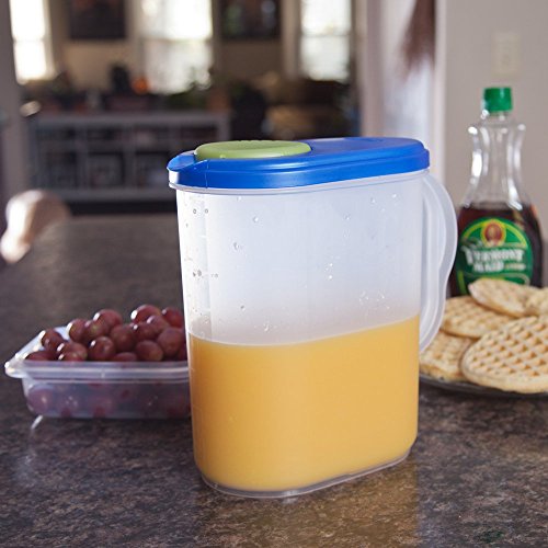 Sterilite 04904106 1 Gallon Pitcher, Blue Sky Lid w/ Lime Tab & Clear Base, 6-Pack