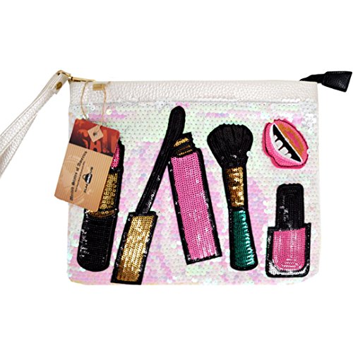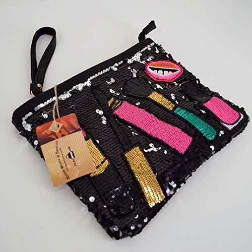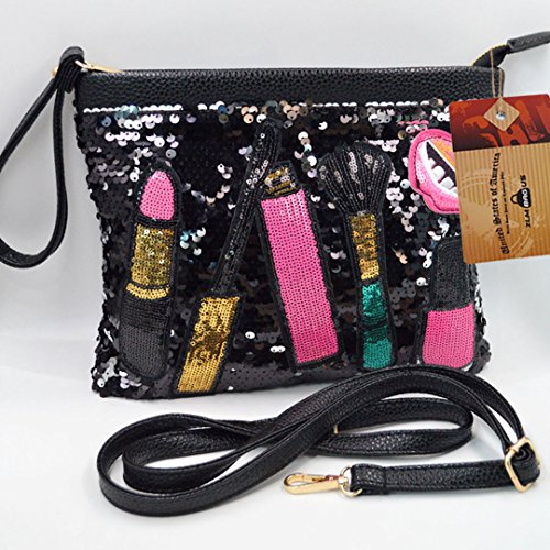 -. Feature : Purse Dimension (L*W*H): 26*2*22cm/10.2*0.8*8.7in / Materials: good quality sequin fabric + soft polyester lining, simple design, never go out of style / Features with the fancy sequin design, chic and dazzling, makes you the focal spot in the crowd; the lovely patch work, lipstick, mouth, nail polish stickers, add brightness and sweetness to the bag; contrast color design, white, blue, black, gold, all are gorgeous and worth to try / The envelope handbag shape design, stylish and practical, the combination of fashion and function; large capacity, double stitching, more spacious and durable than others; suitable for wallet, key, lipstick, cash, cell phone, tissue or other items; perfect for daily carrying or cosmetics storage pack / One detachable wristband and adjustable PU shoulder strap, soft and smooth texture, very comfortable to wear; can be used as an evening clutch, a tote purse, a handbag, a shoulder or crossbody bag; works perfectly for dating, shopping, hanging out, travelling, parties; one beautiful and versatile bag for girls or ladies