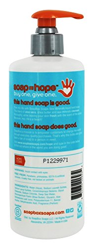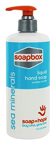 Soapbox Soaps - Liquid Hand Soap Sea Minerals - 8 oz. (226 g) Soapbox Soaps Liquid Hand Soap Sea Minerals is a blend of aloe vera, shea butter and sea minerals cleanses thoroughly while leaving the scent of the ocean in it's wake. Because, hey, life's a beach. Cruelty-Free Vegan B Certified Paraben-Free Eco-Friendly Made in The USA Paraben, Sulfate & Phthalate-Free EDTA & Artificial Colors-Free Gluten-Free Each Soapbox Product you Purchase = 1 Extra Donated to those in Need by Soapbox Soaps Good. Clean. Soap.Soapbox Soaps products are ethical, environmentally friendly, and natural...they are also great for your skin. Frequently Asked Questions What does Soapbox Soaps mean their soap is "all natural"?The base of their soaps are made with all natural olive, coconut, soybean, and corn oils and scented with a blend of all natural essential oils. Soapbox Soaps include organic shea butter and unrefined sea salt both of which provide natural benefits for your skin. What is the benefit of sea salt?Sea Salt is a natural exfoliant and is an important ingredient in every one of Soapbox Soaps bars. The texture of the sea salt is smooth to the touch so it can gently slough off dead skin cells, and soften tough skin. Sea salt is made by taking water from either oceans or saline lakes and letting the water evaporate to leave the salts behind, whereas table salt is mined from salt deposits in the earth and heavily processed to produce "clean" salt. What is the benefit of organic shea butter?Shea butter is extracted from the nuts of the Shea tree (Butyrospermum parkii), which grows in the savannah of Western Africa. For millennia, people have used it to protect their skin from the drying winds and sun as well as to heal many skin problems, minor cuts and burns. The shea butter Soapbox Soaps uses is certified organic and is included in every bar of soap they make. Shea butter has a natural richness in essential fatty acids,