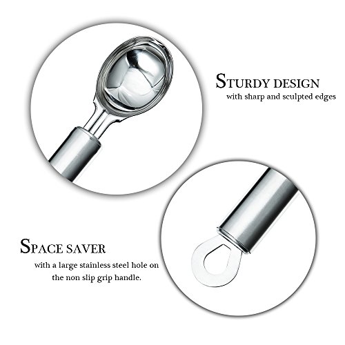 ✔Sturdy design with sharp and sculpted edges featuring a unique tip allows scoop to glides effortlessly through hard frozen dessert in one swift motion .