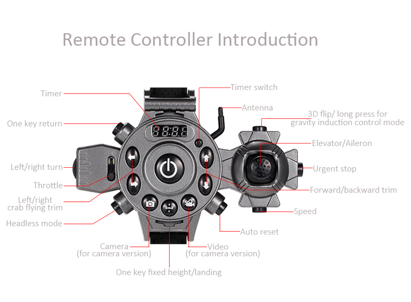 Gravity induction control mode allows you to fly the drone forward/backward/left/right in correspondence to the angle of the remote controller or mobile phone.